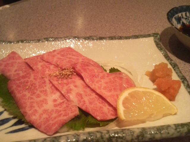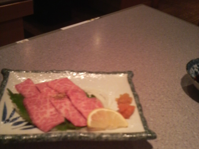 2人だし、奮発しちゃってぇ~♪高級焼肉屋にレッツゴーって言う事で、生肉のお刺身とか始めて食べちゃったりして、二人とも生ものにお酒が好きでw生ものが美味しいお店だから、生ものプラス、焼肉は控えめだけど、タンがすっごく分厚いの!!